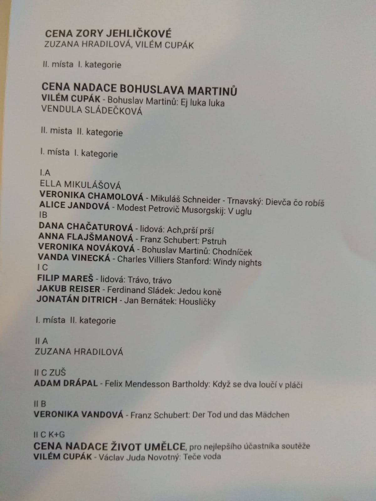Výsledky a účast na soutěžích